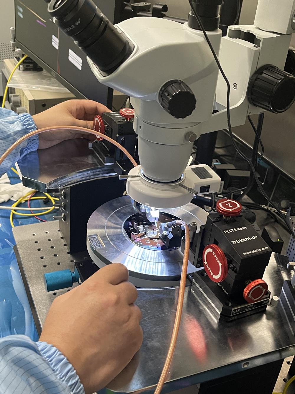 射頻探針座:三維精密調(diào)節(jié),位移精度高達(dá)0.7um,精密可微調(diào)探針夾具,高速射頻線纜;