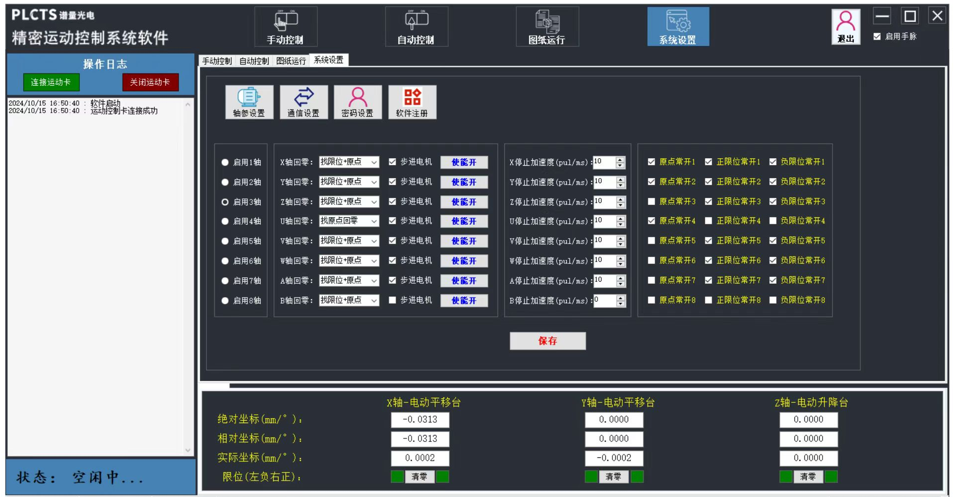 . 用于驅(qū)動(dòng)控制電機(jī),配合電控臺(tái)使用,實(shí)現(xiàn)位移自動(dòng)化運(yùn)行; . 基于USB通訊的運(yùn)動(dòng)控制卡,最多可控制八臺(tái)電機(jī);; . 面板功能齊全,可對(duì)各軸直接進(jìn)行操作控制; . 可設(shè)置脈沖數(shù),位移單位,運(yùn)動(dòng)狀態(tài)顯示窗口的單位與其一致; . 配有標(biāo)準(zhǔn)的RS232接口,配合控制軟件可以通過計(jì)算機(jī)控制位移; . 具有I/o檢測(cè)功能,可連接光柵尺或編碼器,實(shí)現(xiàn)閉環(huán)控制; . 在運(yùn)行程序段時(shí),可在運(yùn)動(dòng)過程中對(duì)相關(guān)運(yùn)動(dòng)數(shù)據(jù)進(jìn)行采集并保存; . 操作界面直觀,軟件功能豐富,方便用戶二次開發(fā)或系統(tǒng)集成。 |