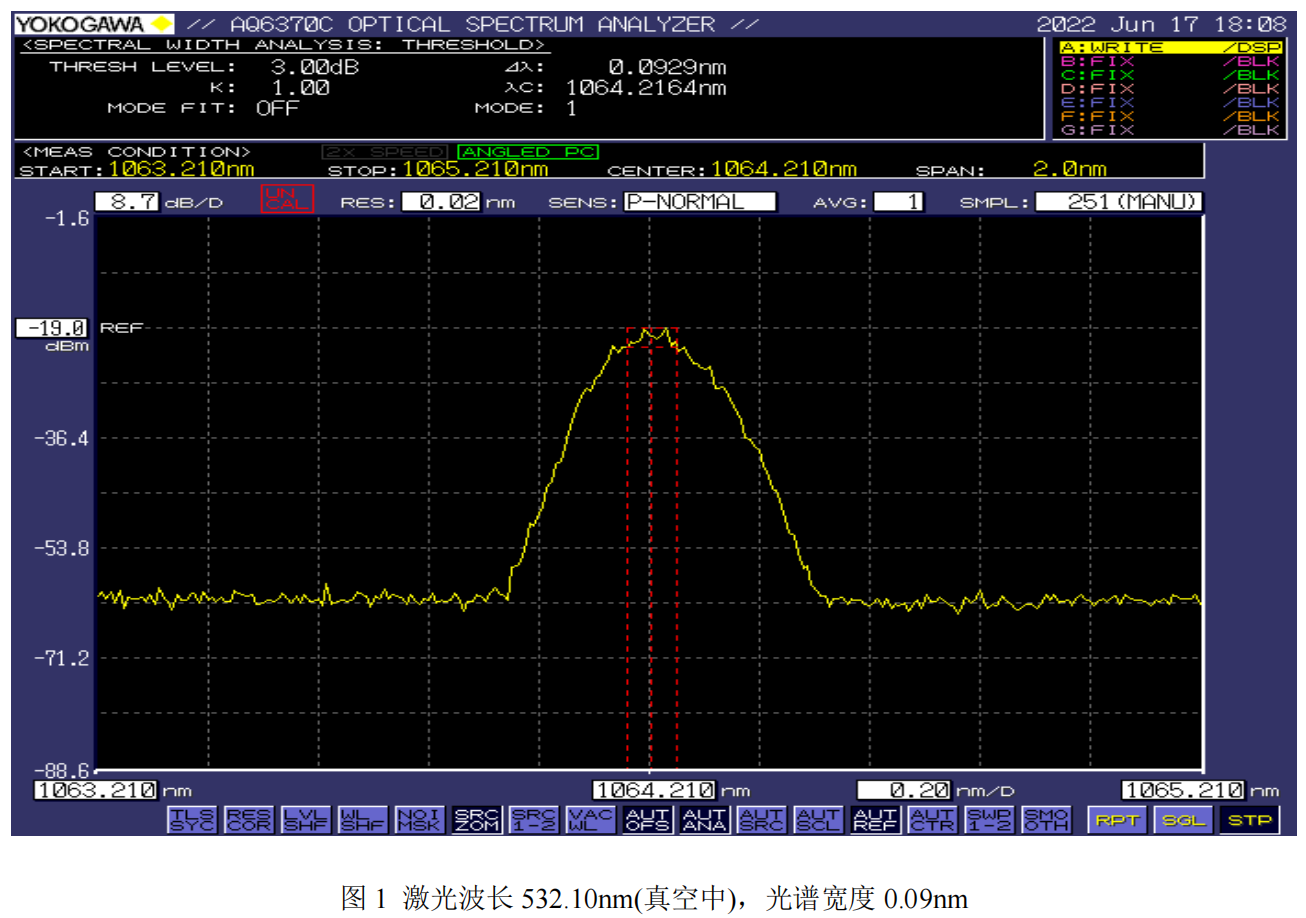 以下為輸出單波長532nm,能量≥20mJ款的實(shí)測報(bào)告,供參考。 測試報(bào)告: