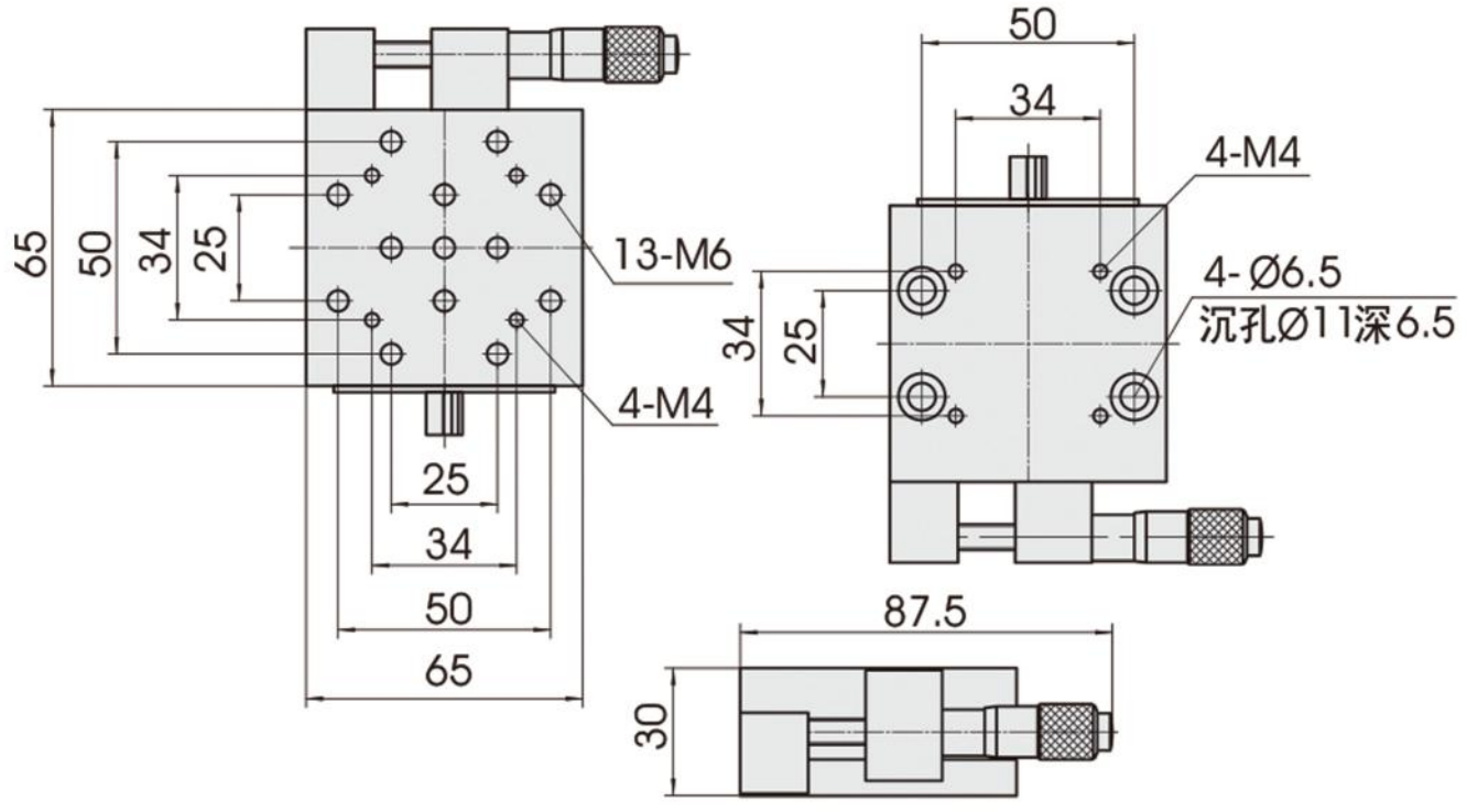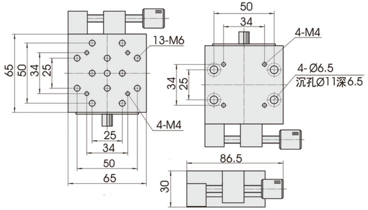 技術(shù)優(yōu)勢: . 主體材質(zhì)采用優(yōu)質(zhì)鋁合金,表面噴砂氧化發(fā)黑處理 . 采用精密交叉滾柱導(dǎo)軌,精度優(yōu)良,承載較大,壽命長 . 采用螺紋副或微分頭驅(qū)動 . 采用彈簧復(fù)位,消除軸向間隙 . 臺面和底座分布標(biāo)準(zhǔn)孔距的安裝孔,方便安裝和組合 . 可與譜量其他系列位移產(chǎn)品組成多維度調(diào)節(jié)系統(tǒng) . 該系列整體靈敏度優(yōu)于2μm . 可根據(jù)用戶需求定制不同臺面和行程 . 適用于光學(xué)實驗等對手動調(diào)節(jié)精度要求較高的場景 |