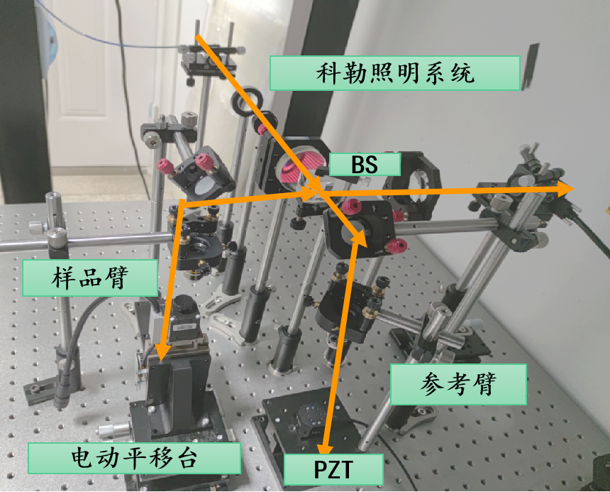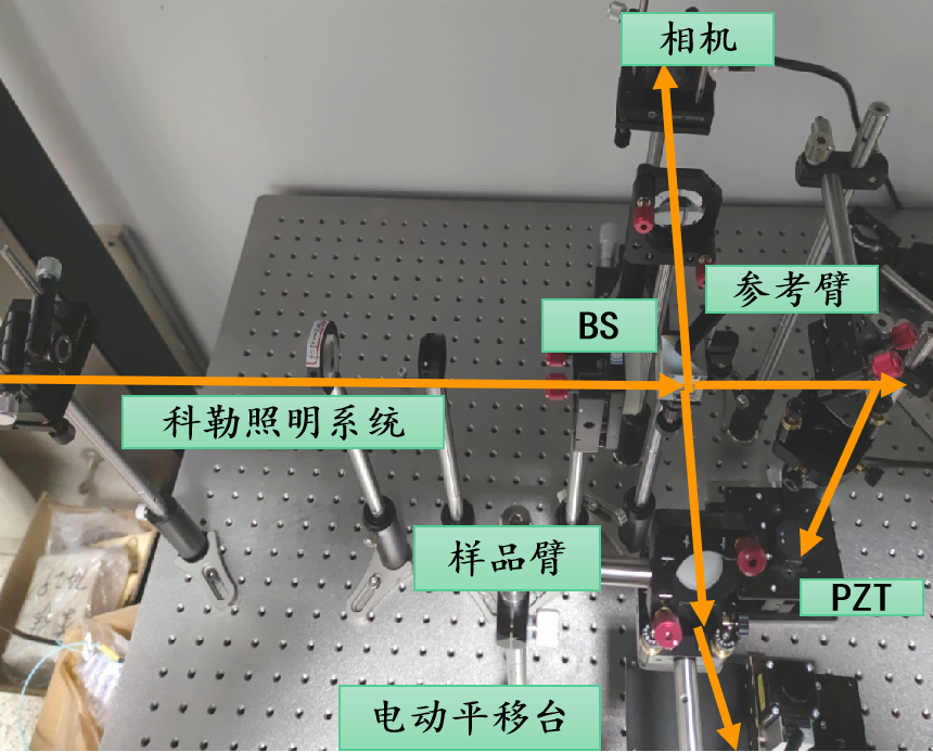 實驗目標包括理解FF-OCT的基本原理,學習搭建光路并調(diào)節(jié)干涉條紋,掌握四步相移法進行相位調(diào)制,并通過改變參考臂光程獲取不同深度的層析信息。實驗采用寬帶低相干光源,利用相移法濾除背景噪聲,并通過計算機解析干涉信號以重建樣品內(nèi)部結構。