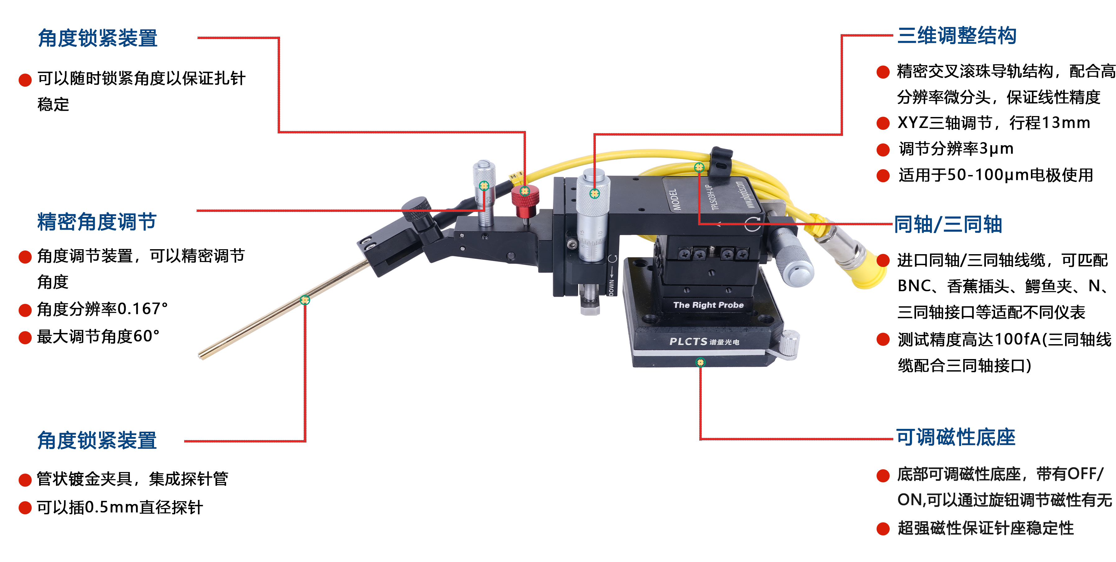 .適用于在顯微鏡下定向調(diào)節(jié)探針,無視野遮擋;